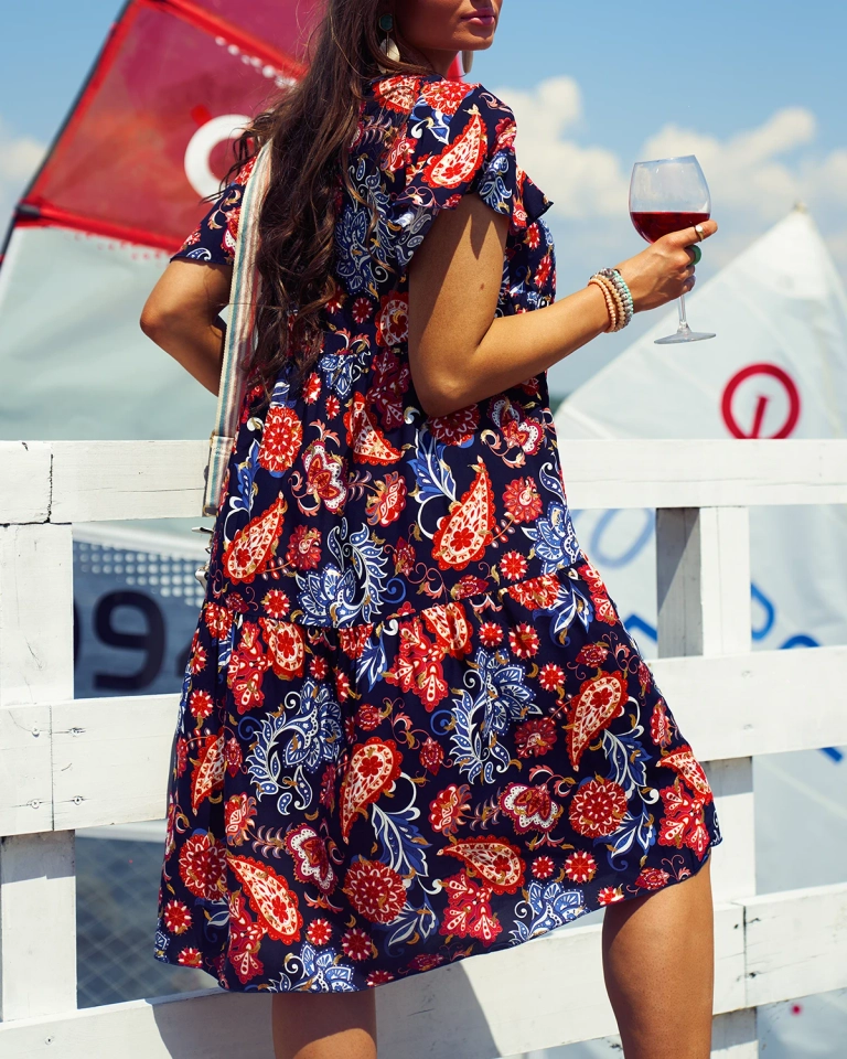 - Красива жіноча барвиста сукня, виконана з легкої віскозної тканини. Модель з квітковим візерунком, вирізом у вигляді серця та коротким рукавом. Ідеально підійде для спекотних літніх днів. ПРИМІТКА: Похибка вимірювання (+/-) 1 см.