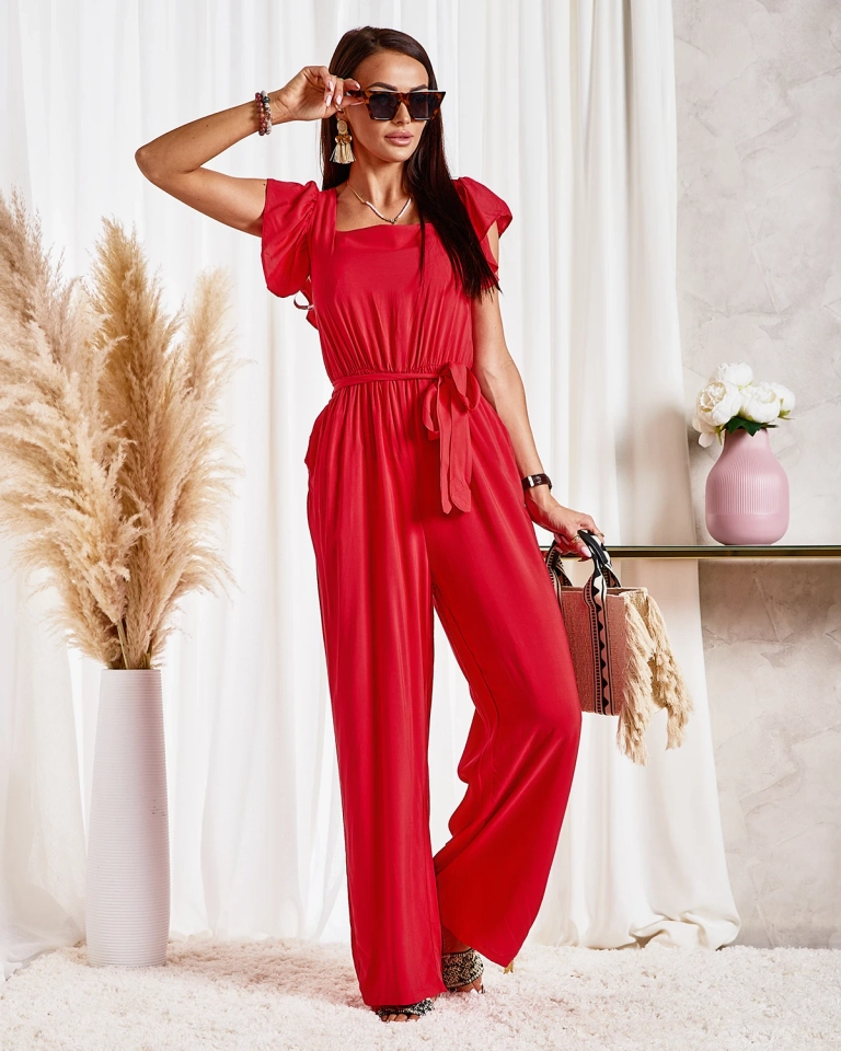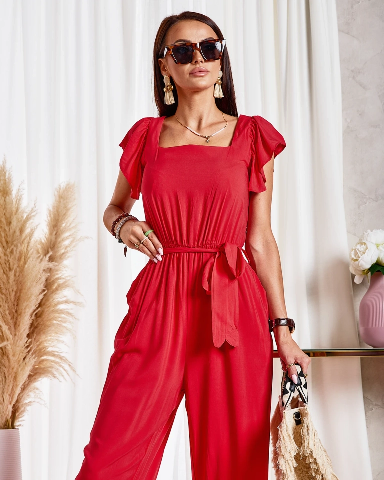 - Класичний жіночий комбінезон з коротким рукавом. Модель з прямокутним вирізом горловини та резинкою по ширині спинки. Додатково в комплекті передбачений пояс. Виріб має широкі, довгі штанини. ПРИМІТКА: Похибка вимірювання (+/-) 1 см.