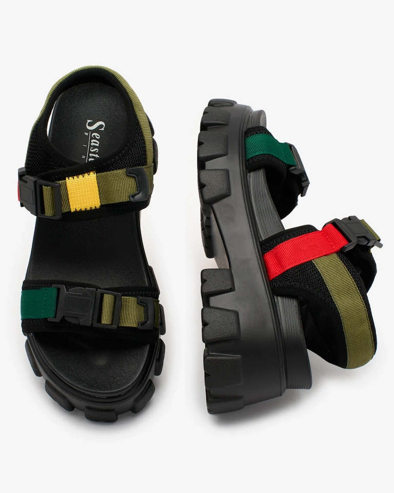 Royalfashion Зелено-чорні жіночі босоніжки на суцільній підошві Rodeksi