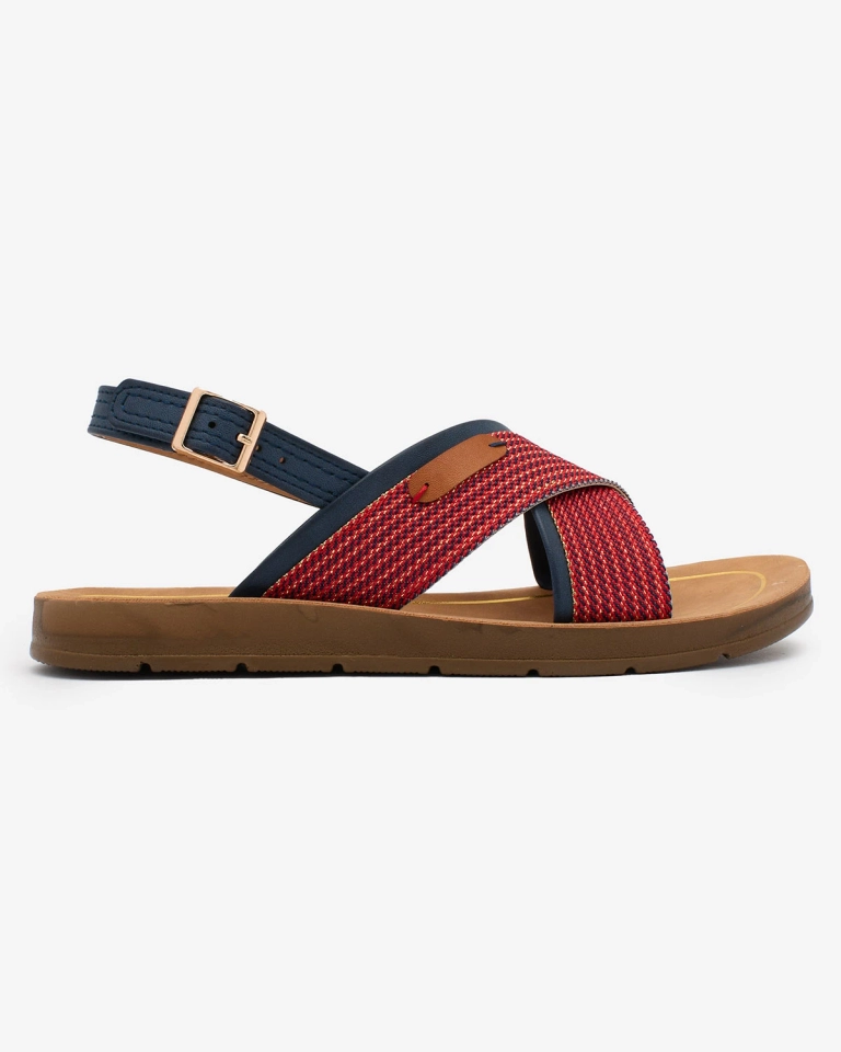 Жіночі босоніжки Royalfashion темно-сині з червоними вставками Ederisa