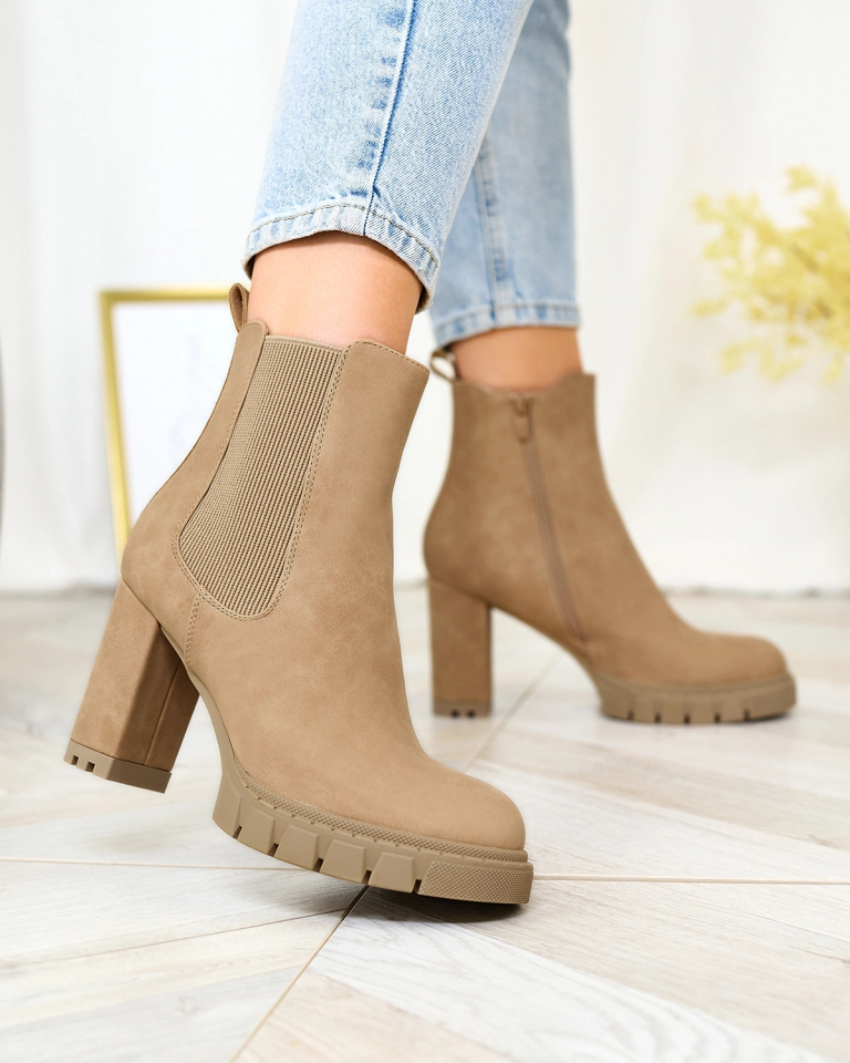 - Виняткові жіночі м'яко утеплені чоботи на високих підборах. Верх виконаний з екологічної шкіри. Устілка наповнена хутром. Взуття застібається на блискавку та має еластичну вставку збоку. Супер доповнення до ваших осінніх образів!