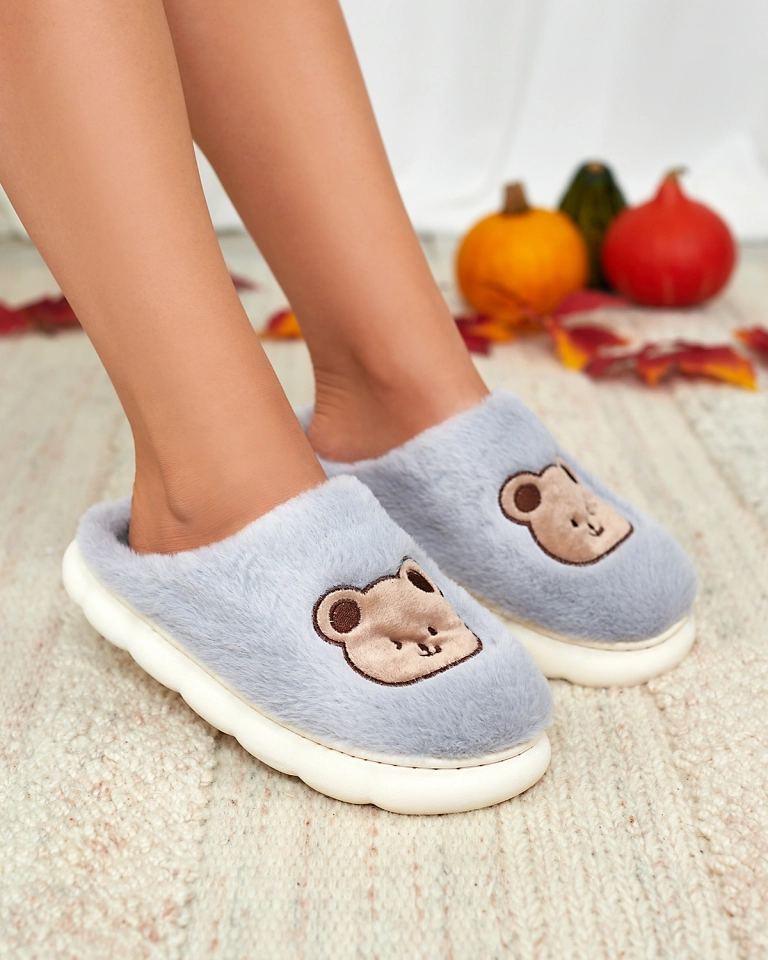 Сині жіночі хутряні капці Royalfashion з ведмедиком Hettres