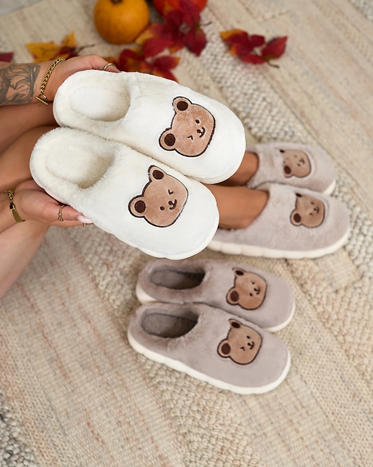 Royalfashion Білі жіночі хутряні капці з ведмедиком Hettres