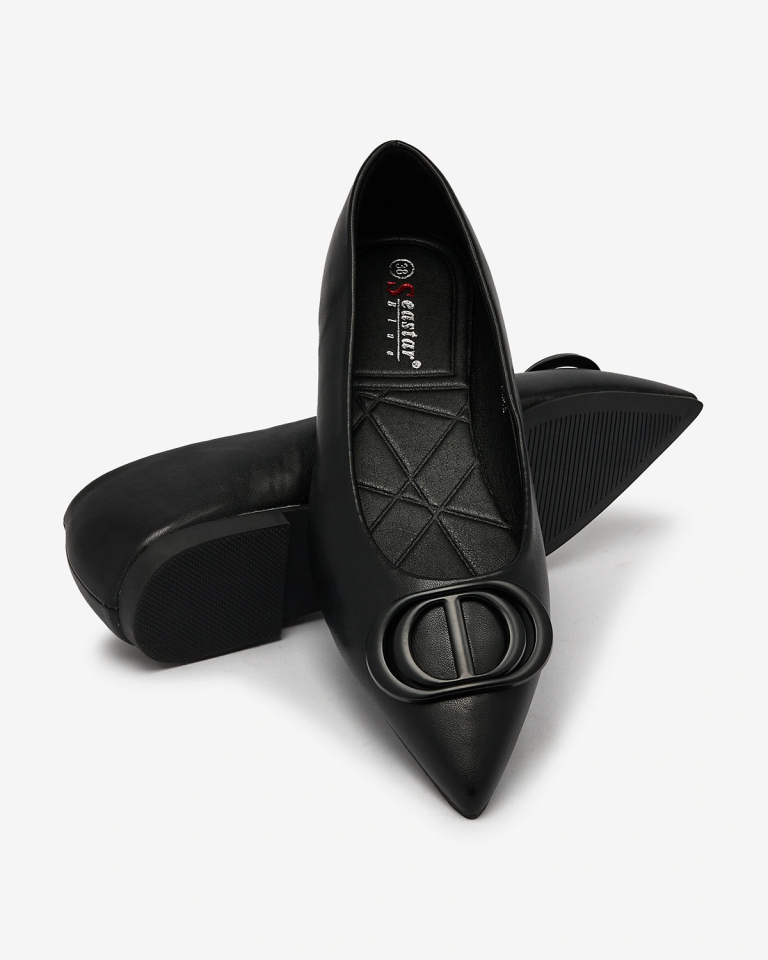 - Жіночі балетки на плоскій підошві, повністю виготовлені з органічної шкіри. Загострений ніс прикрашений металевою пряжкою. Чудове доповнення до повсякденних образів!