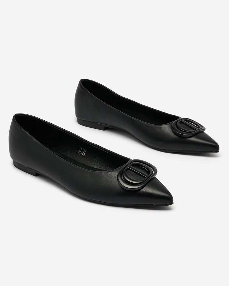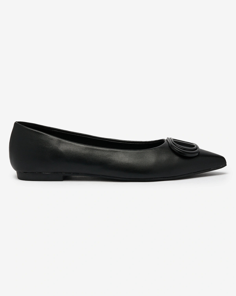 Royalfashion Чорні жіночі балетки з гострим носком та прикрасою на носі Manixy