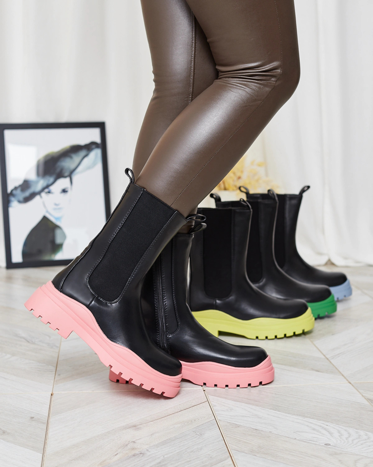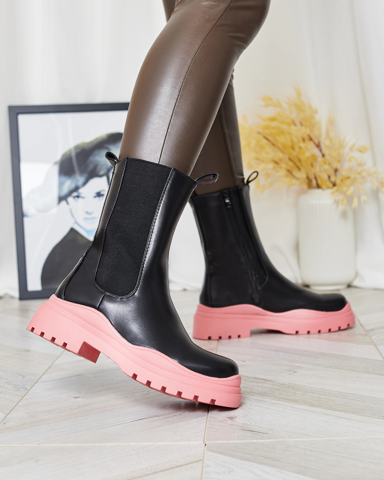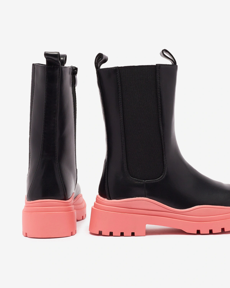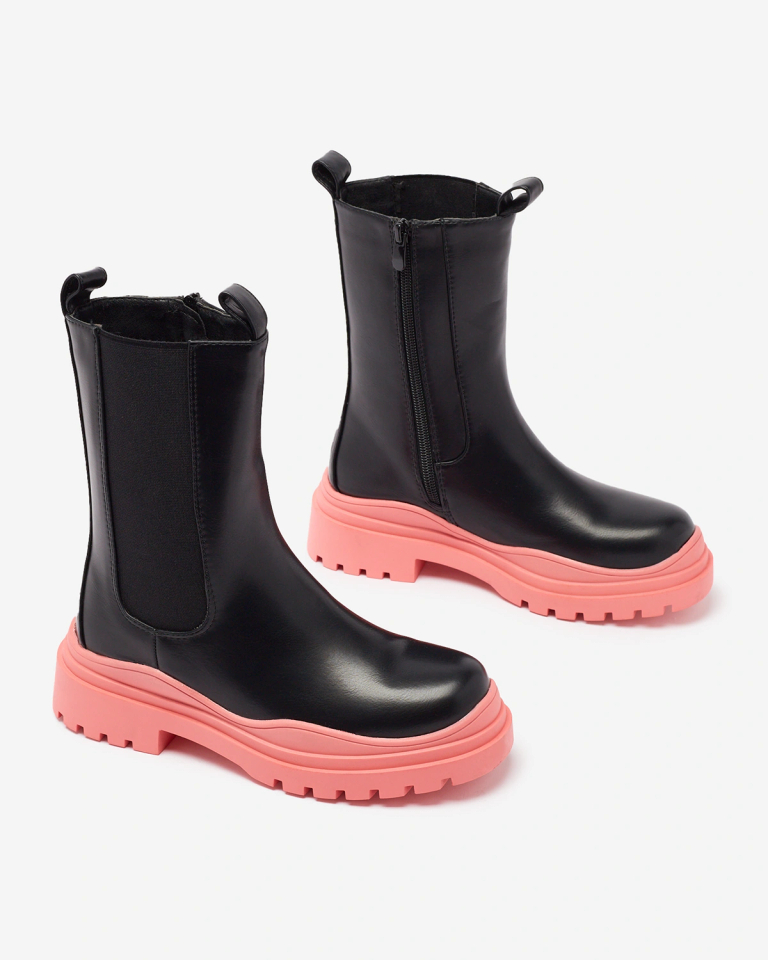 Royalfashion Жіночі високі чорні чоботи на рожевій підошві Beerus