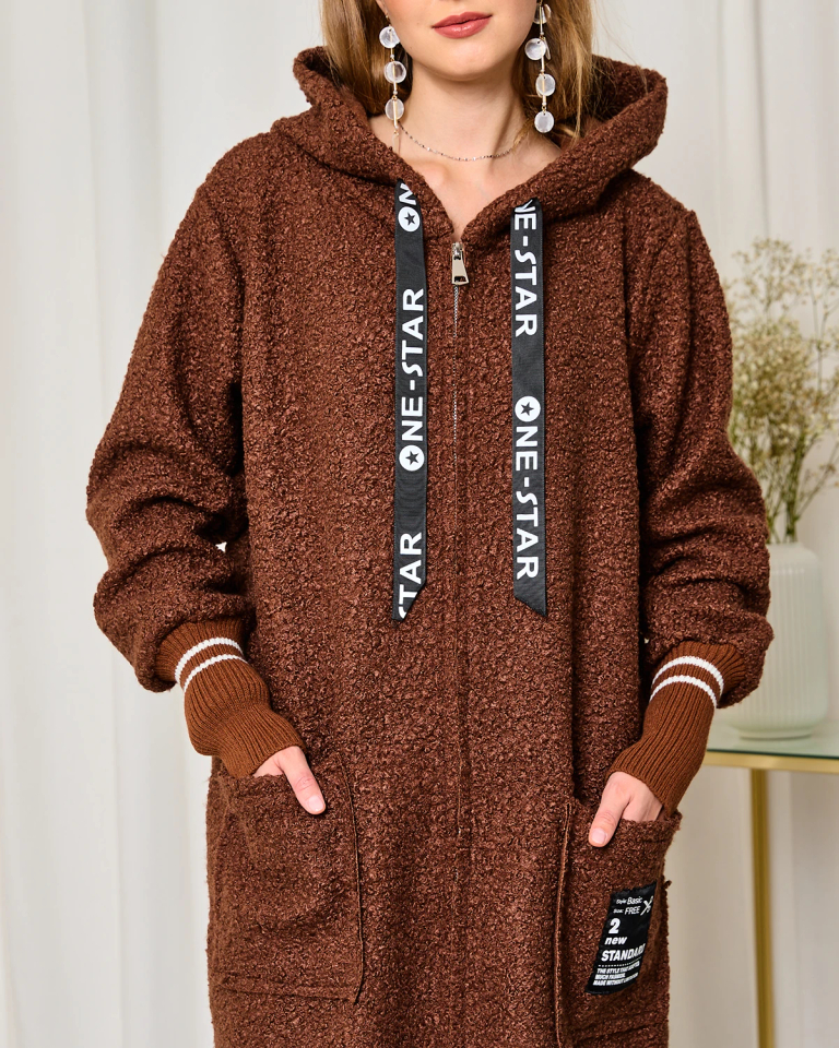 - Жіноче пальто, виготовлене з тканини а-ля овчина. Модель вільного крою, має довгий рукав та застібку на блискавку. З боків пришиті дві глибокі кишені. Чудовий варіант на осінь! ПРИМІТКА: Похибка вимірювання (+/-) 1 см.