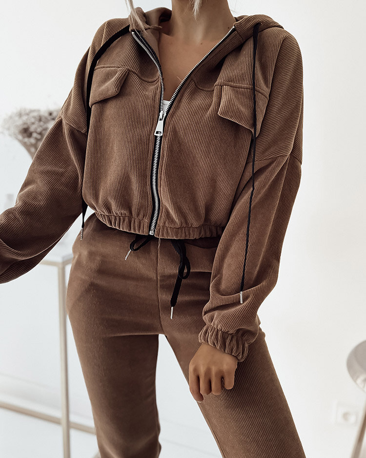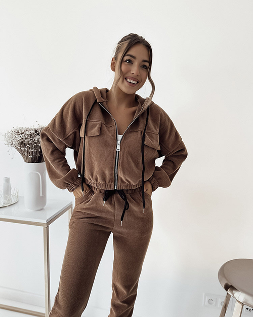 - Мега зручний жіночий світшот, виготовлений з м'якої та приємної на дотик тканини. Короткий світшот застібається на блискавку, має капюшон та зав'язки. Штани з 2 врізними кишенями, на резинці та шлевками на талії. Ідеальна основа для повсякденних образів!