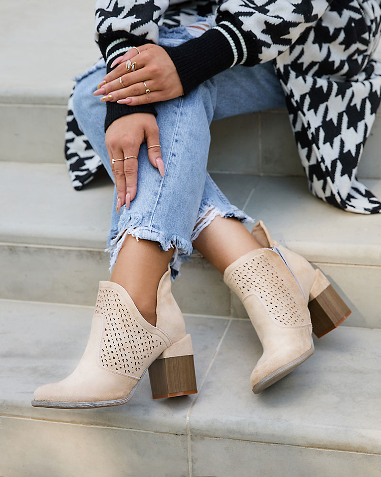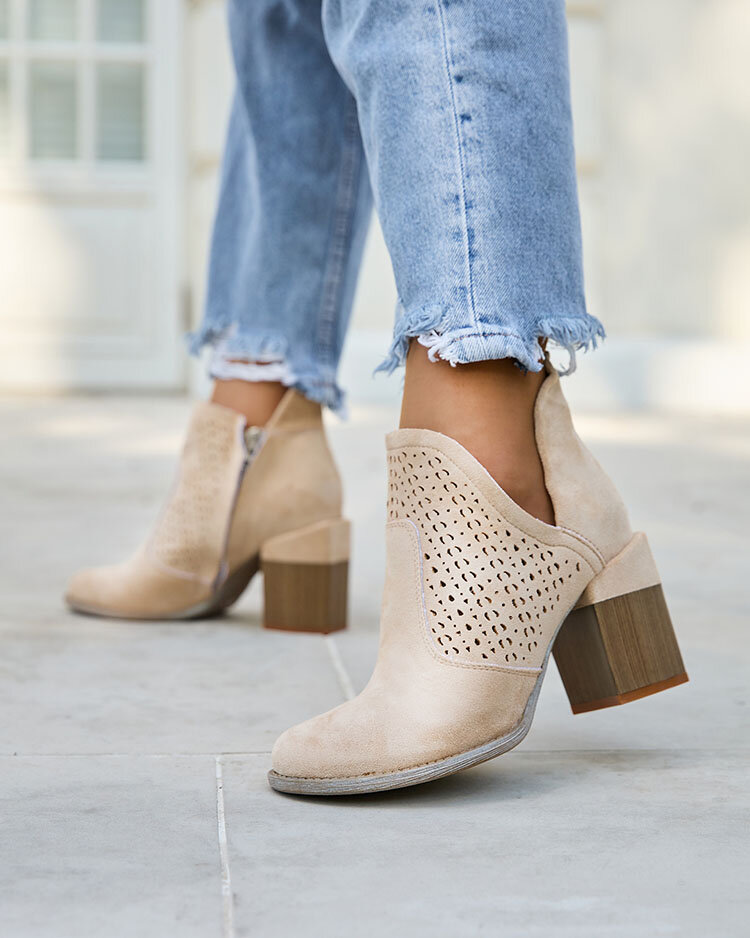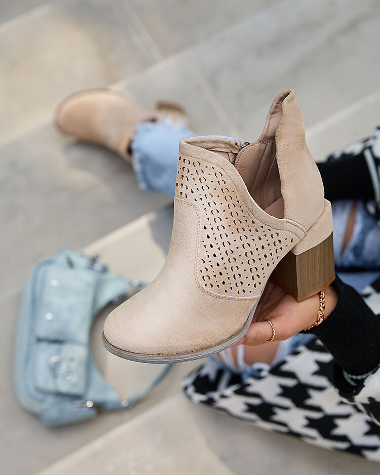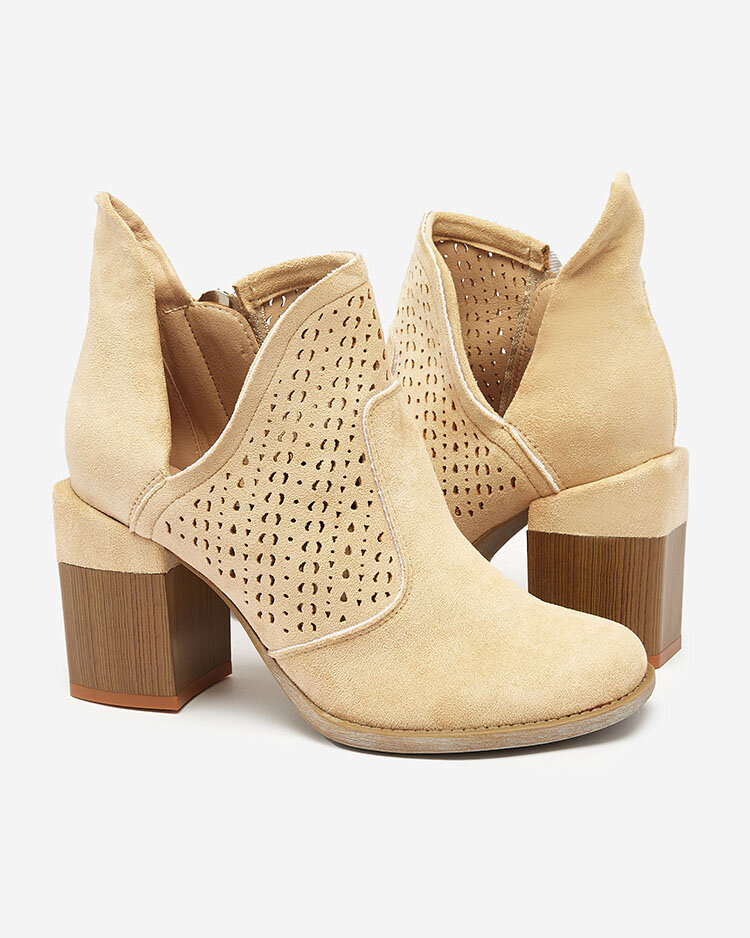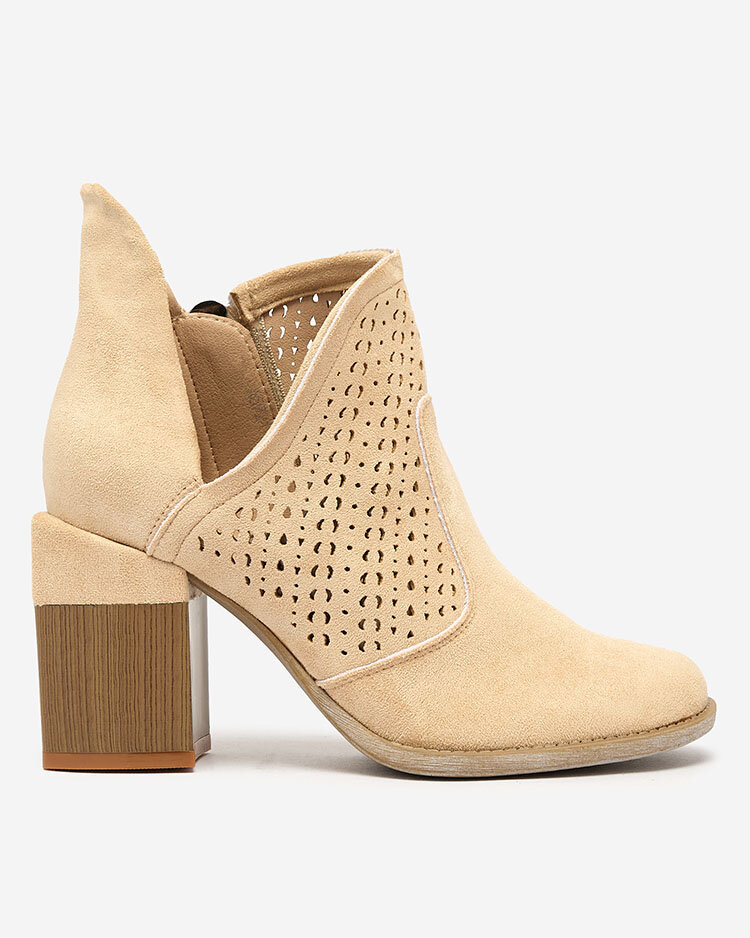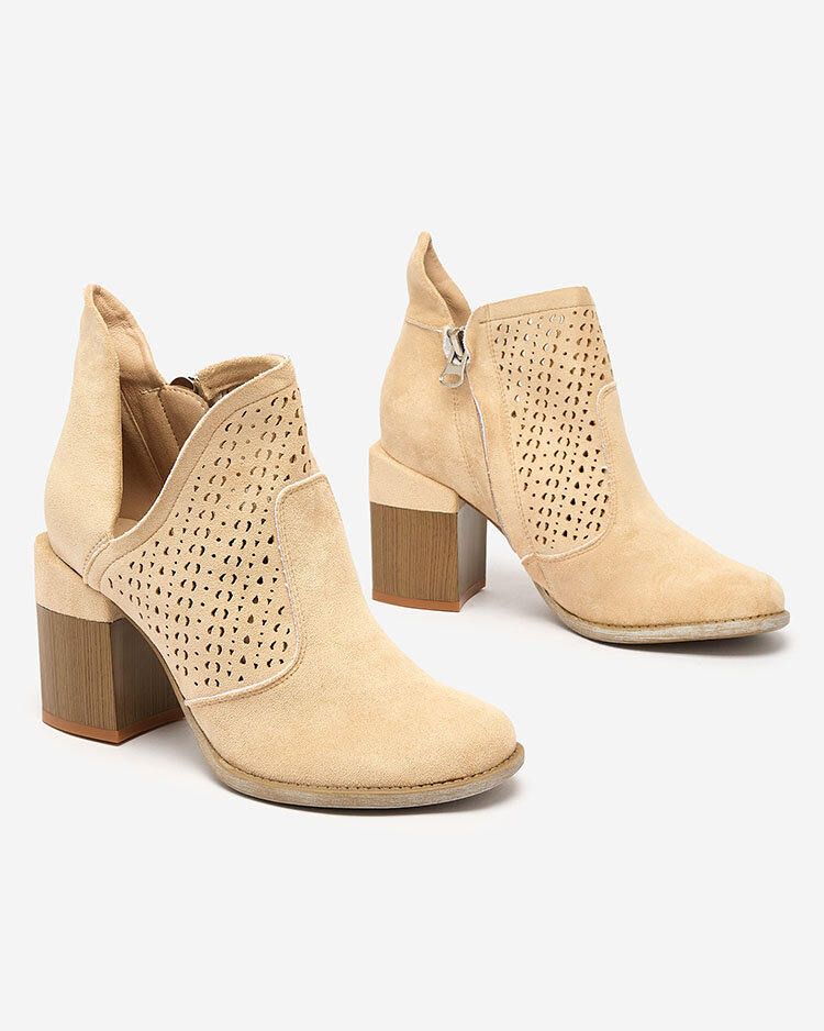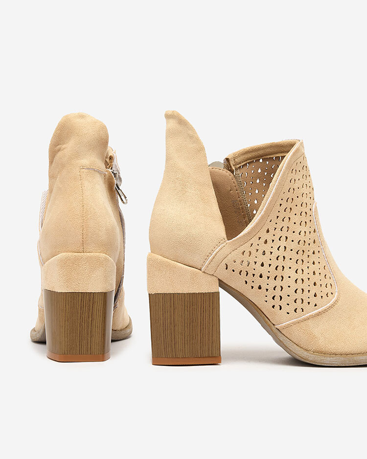 - Жіночі черевики на невисокій шпильці та з вирізом збоку, виготовлені з екозамші. По центру підкладка з екошкіри, модель застібається на блискавку та оздоблена ажурним декором. БЕЖЕВІ ЖІНОЧІ НЕОПАЛЮВАЛЬНІ ЧОБОТИ NEAFLA