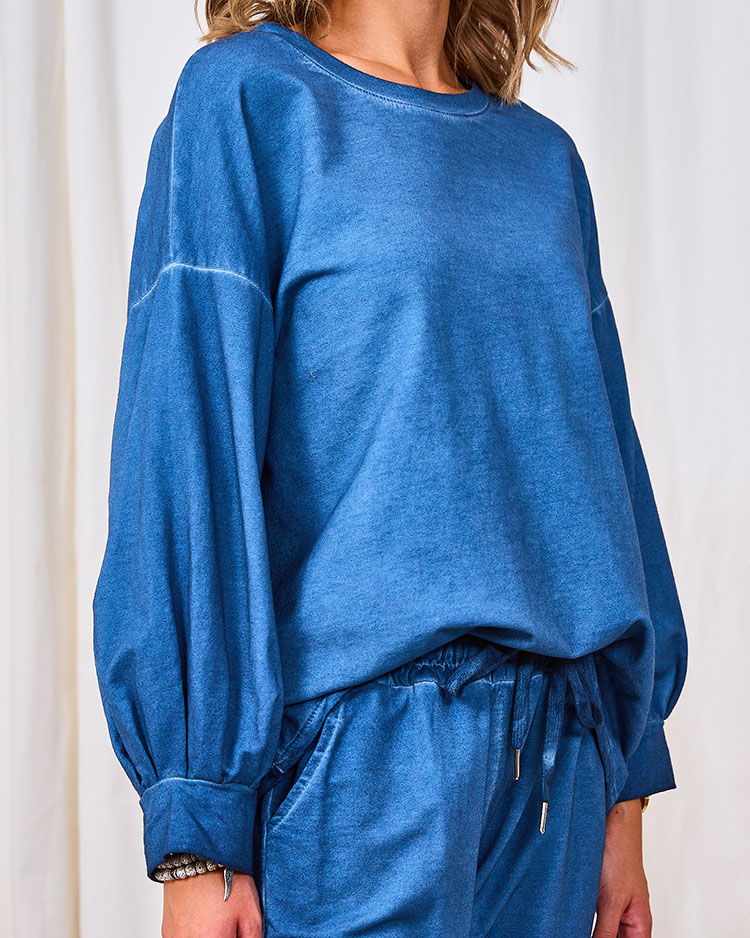 - Повсякденний жіночий комплект світшотів, виготовлений з бавовняної тканини. Світшот одягається через голову, має довгий рукав. Штани з 2 врізними кишенями, на гумці та з поясом на талії. Ідеально підходить для тих, хто цінує комфорт.