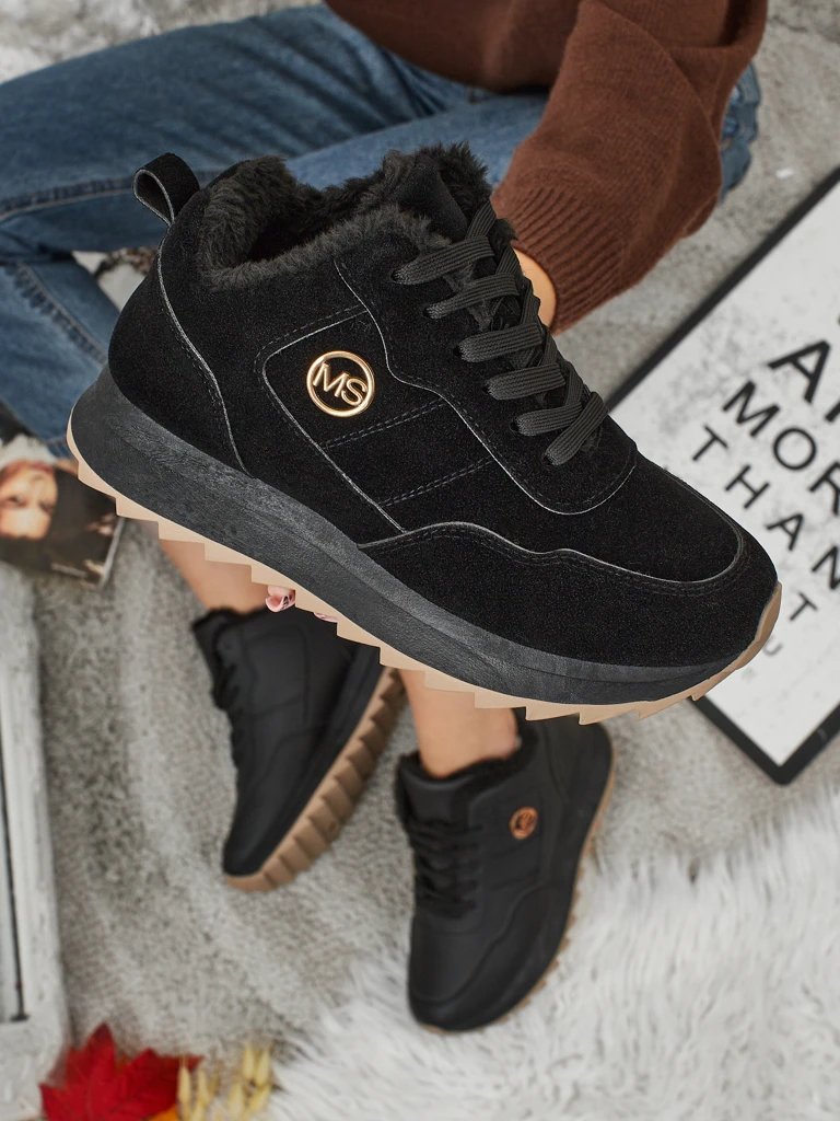 • Жіночі утеплені спортивні черевики на товстій підошві. Шнурована халява виготовлена з екологічного нубуку. Всередині м'яке хутро. Чудовий додаток до твоїх зимових аутфітів у стилі casual!