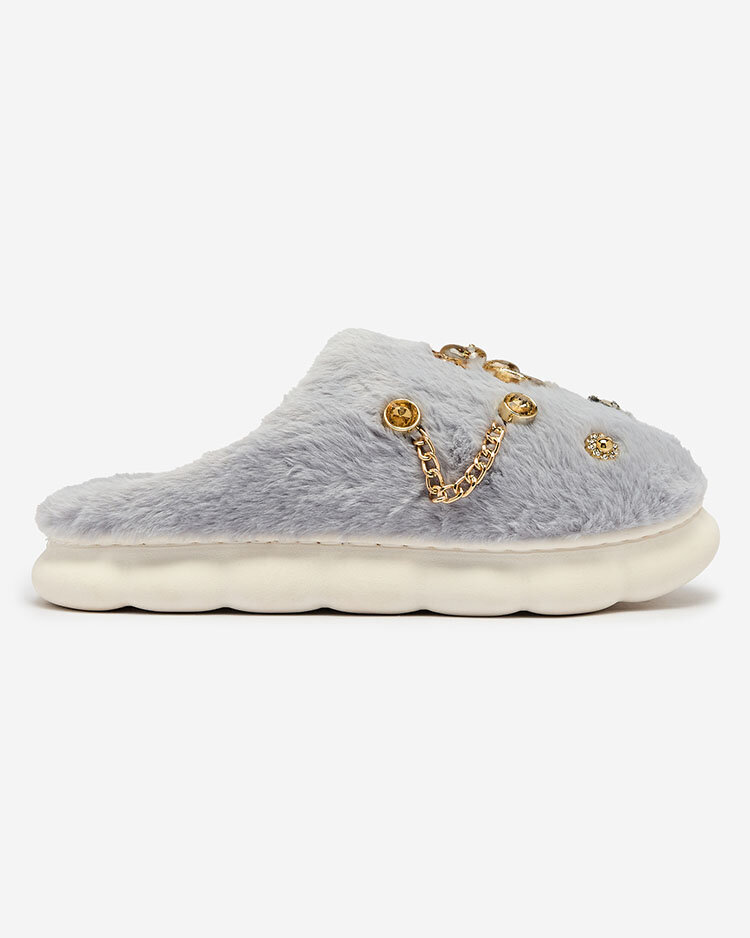 • Сенсаційні жіночі капці на плоскій підошві, декоровані ланцюжками та пластиковими прикрасами у вигляді ведмедика. Модель виконана з матеріалу, що імітує хутро. Чудовий варіант для домашніх образів!