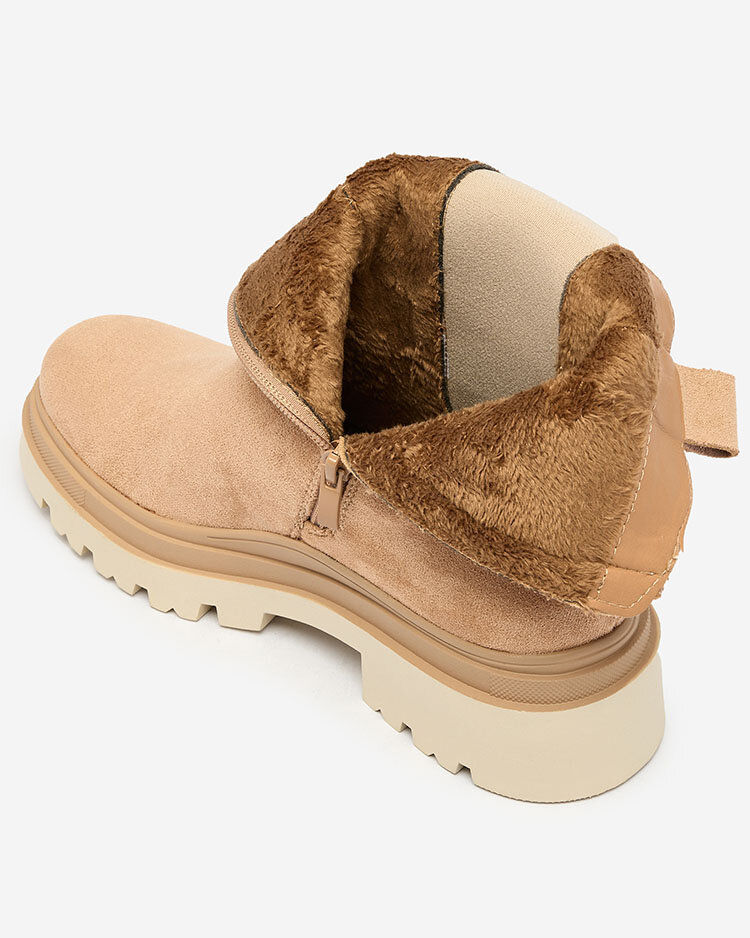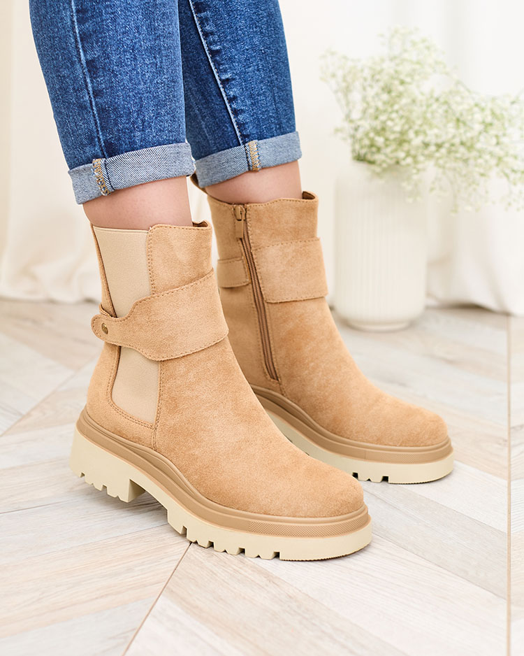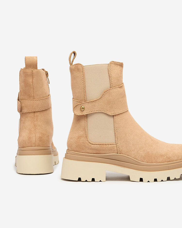 - Стильні жіночі черевики з екологічної замшевої шкіри, застібаються на блискавку, мають еластичну вставку збоку та декоративний ремінець. Усередині утеплені м'яким хутром. Ідеальна модель на кожен день!