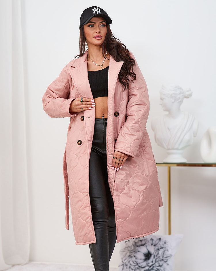 Жіноче стьобане пальто на палітурці Royalfashion світло-рожевого кольору