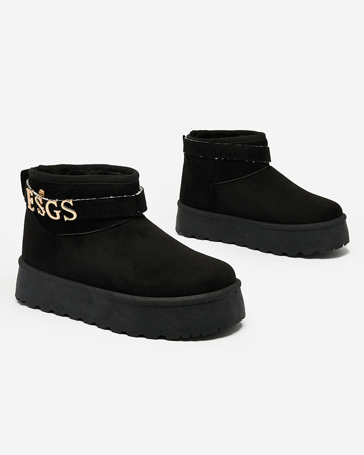 - Мега стильні жіночі утеплені снігоступи з екологічної замшевої шкіри. Устілка наповнена хутром а-ля овчина. Крім того, знімне халяву прикрашає напис. Взуття на високій платформі - ідеальний варіант для зимових повсякденних образів!