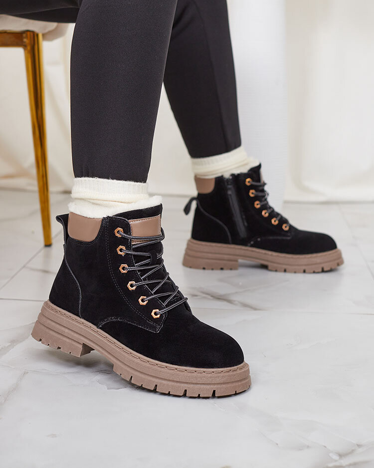 - Непідвладні часу жіночі черевики а-ля трапери. Верх на шнурівці з матової екологічної шкіри, середина утеплена м'яким хутром. Супер доповнення до повсякденних образів!