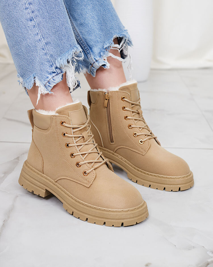 - Непідвладні часу жіночі черевики а-ля трапери. Верх на шнурівці з матової екологічної шкіри, середина утеплена м'яким хутром. Супер доповнення до повсякденних образів!