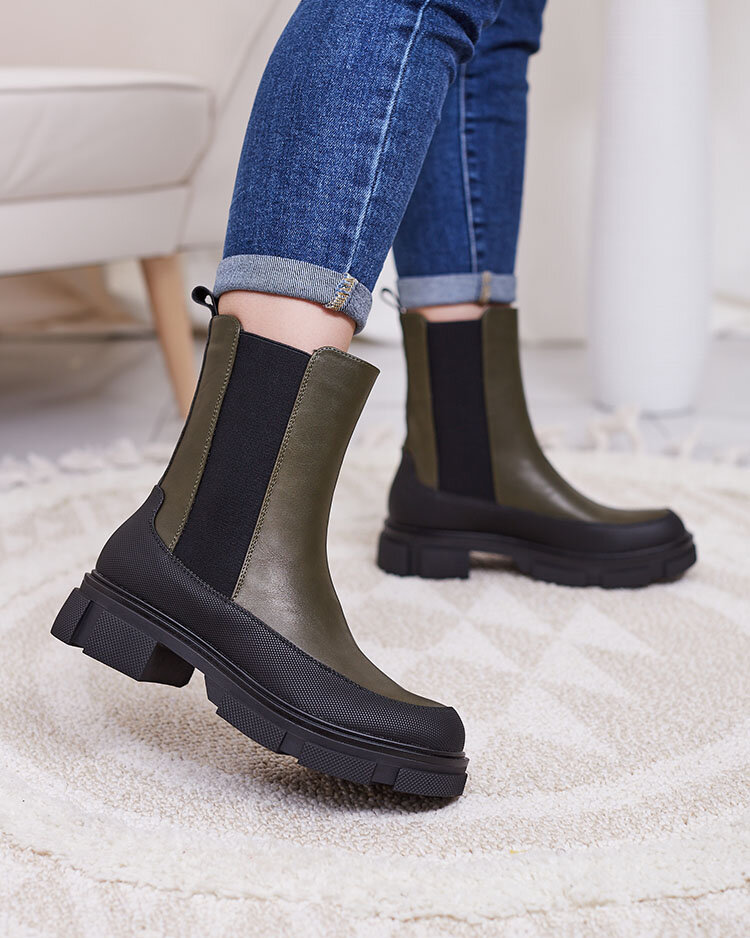- Мега стильні жіночі чоботи з блискавкою посередині. Верх виконаний з комбінації органічної та матової шкіри. Всередині тканинна устілка. Потовщена підошва забезпечує комфорт на кожному кроці. Чудовий вибір на осінь!