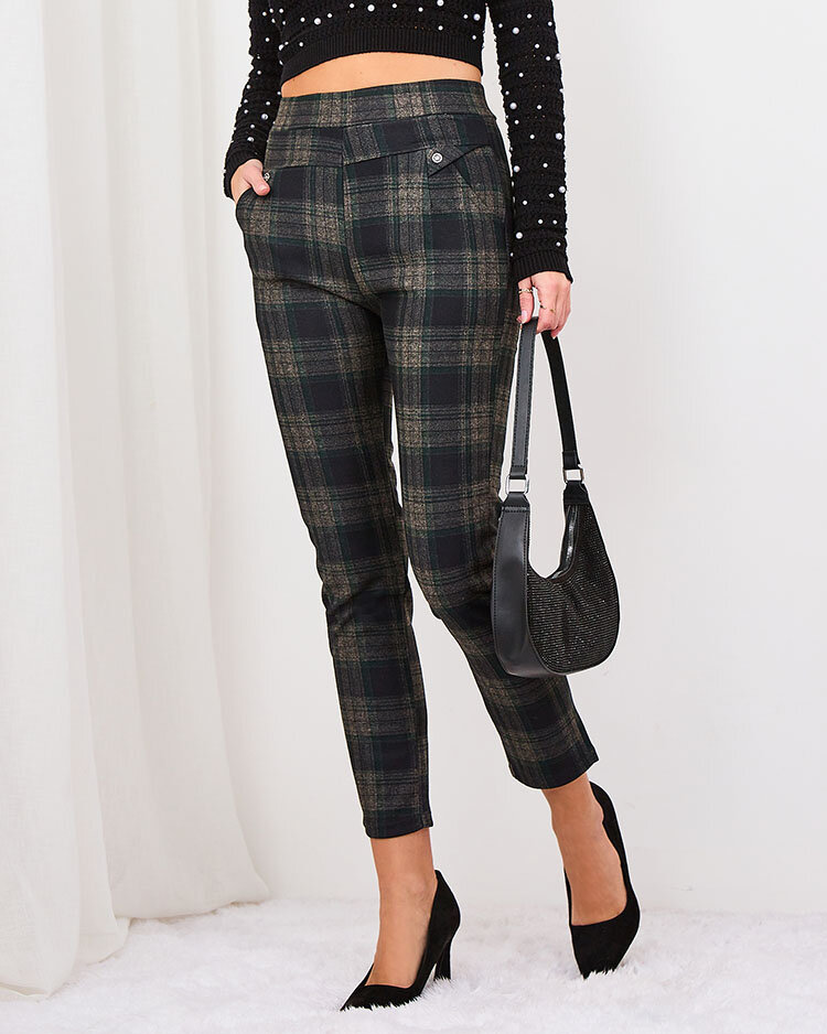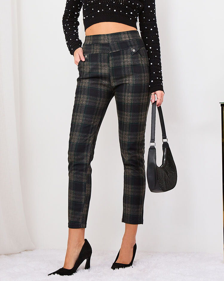 Royalfashion Сіро-коричневі жіночі утеплені лосини в клітинку
