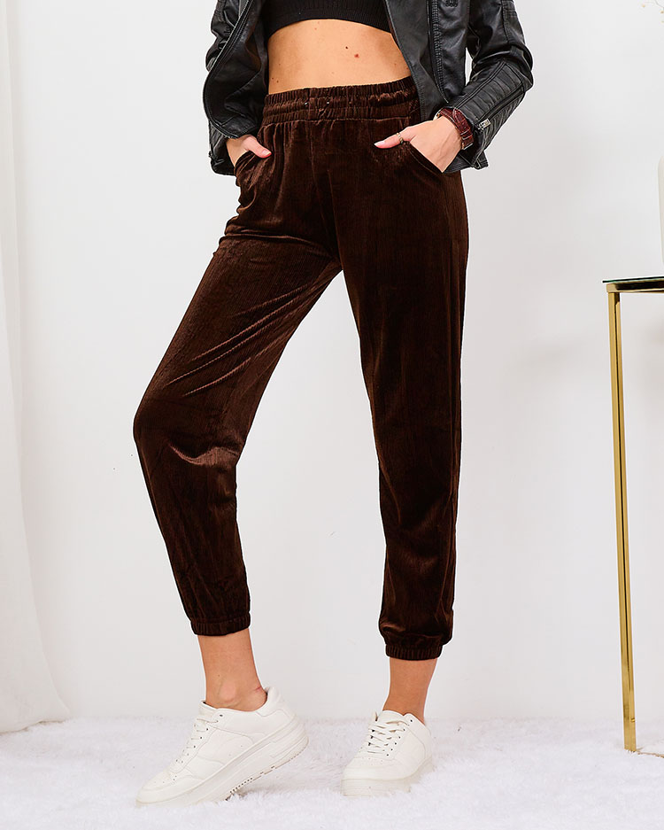 • Мега стильні спортивні штани з м'якої вельветової тканини. Еластичний пояс з регульованими зав'язками дозволяє підігнати штани під вашу індивідуальну фігуру. Плюс, спереду дві врізні кишені.