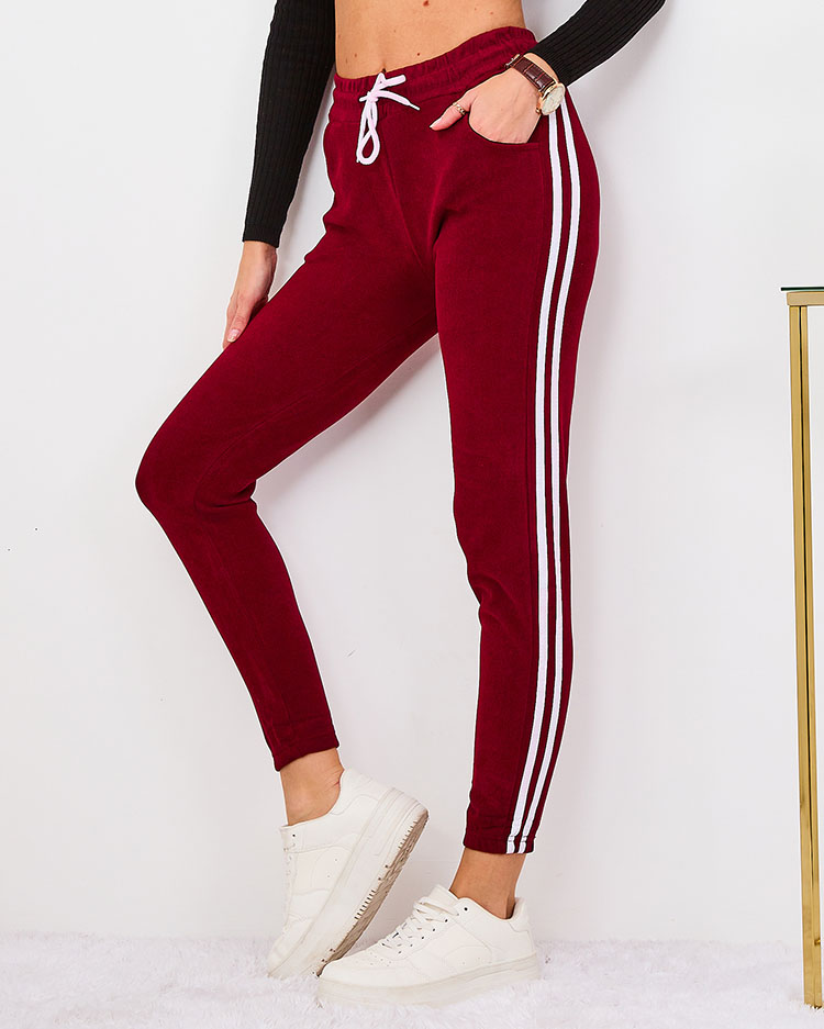 - Класичні жіночі спортивні штани, виготовлені з бавовняного матеріалу. Модель з двома врізними кишенями, широким еластичним поясом та зав'язками на штанинах. Низ штанин оброблений еластичною резинкою зі шнурком. ПРИМІТКА: Похибка вимірювання (+/-) 1 см.