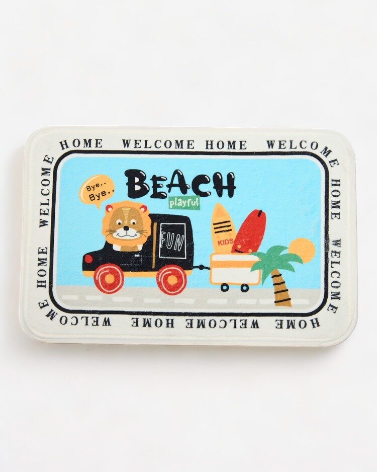 - Невеликий кольоровий килимок на підлогу з коротким ворсом і написом "Welcome Home". Він м'який і ніжний, що робить його надзвичайно приємним на дотик. Додатковою перевагою килимка є його неслизька нижня сторона.