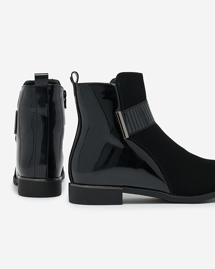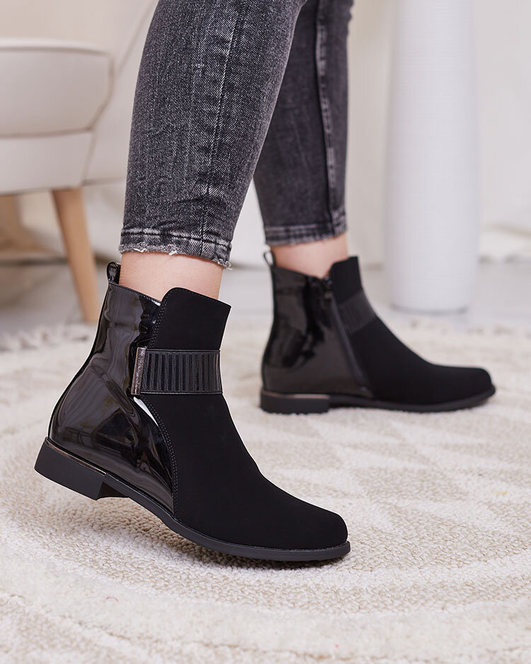 - Елегантні жіночі черевики з декоративним ремінцем. Модель на блискавці, виготовлена з матової екологічної шкіри та лакованих вставок. Оснащені потовщеною підошвою для комфортного носіння!