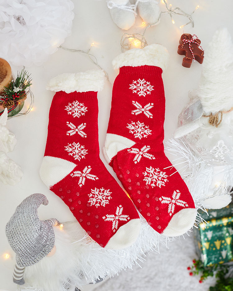 • Красиві жіночі щільні шкарпетки з різдвяним візерунком з неслизьким низом. Усередині утеплені білою теплою овчиною. Шкарпетки чудово підійдуть для холодних вечорів.
