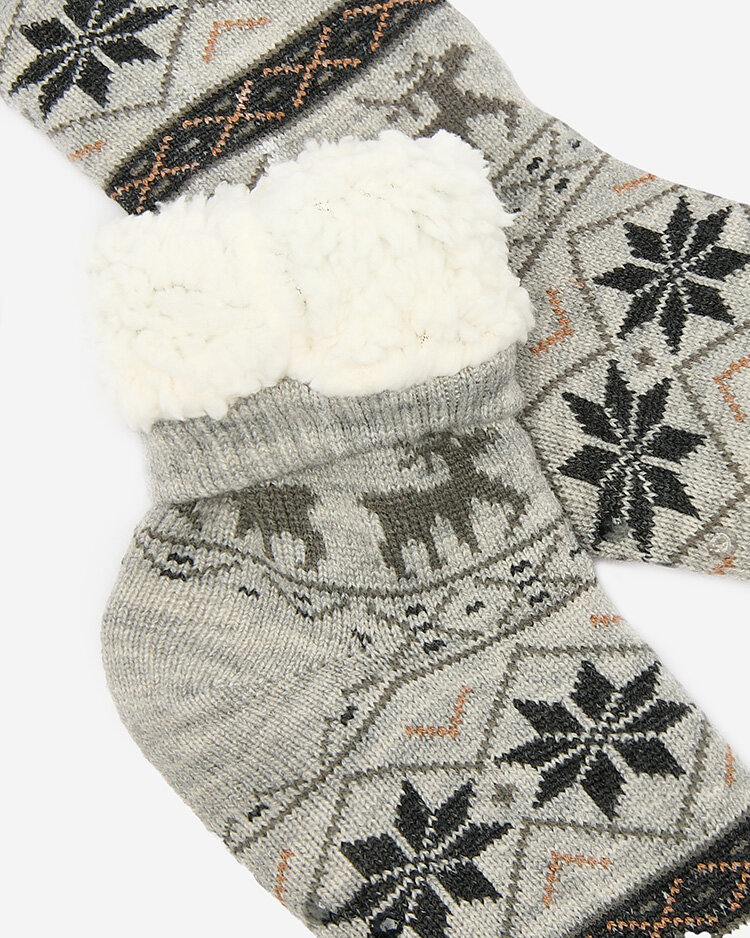 - Товсті чоловічі шкарпетки, утеплені всередині теплою овчиною. Модель оздоблена різдвяним візерунком та нековзним низом. Шкарпетки чудово підійдуть для холодних днів!