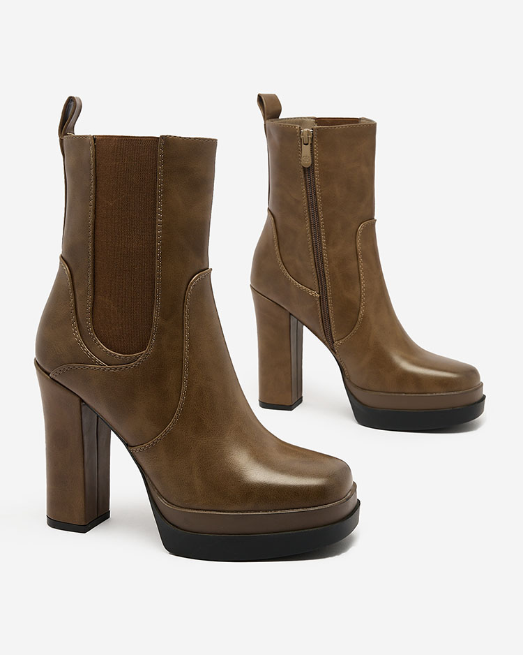 - Чоботи з квадратним носом на високій шпильці та платформі - стиль і комфорт в одному. Еластична вставка збоку та застібка-блискавка для зручності носіння. Повністю виготовлені з органічної шкіри. Ця модель додасть впевненості інформатору!
