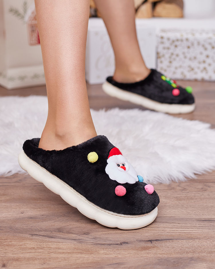 - Симпатичні жіночі капці на плоскій підошві, прикрашені різдвяними нашивками. Модель виконана з матеріалу, що імітує хутро. Чудовий варіант для домашніх образів!