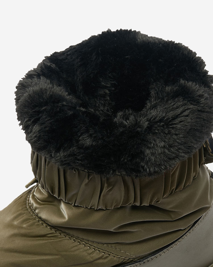 • Сенсаційні жіночі снігоступи. Верх виконаний з матеріалу a'la cerata та вставками з екологічної шкіри. Усередині утеплювач у вигляді хутра, взуття має рант. Ідеальний варіант для зимової пори!