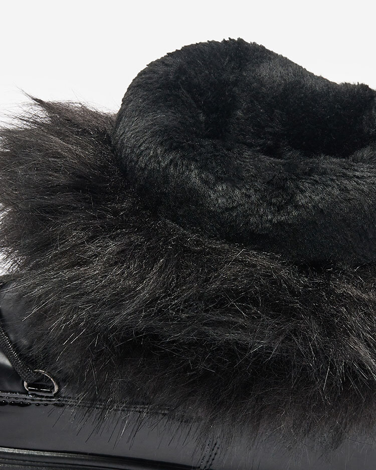 - Жіночі снігоступи з верхом з комбінації еко-лакованої шкіри та матеріалу а-ля клейонка. Усередині утеплювач у вигляді хутра, устілка сюрікени. Модель має хутро на кінці верху. Ідеальний варіант для зими!