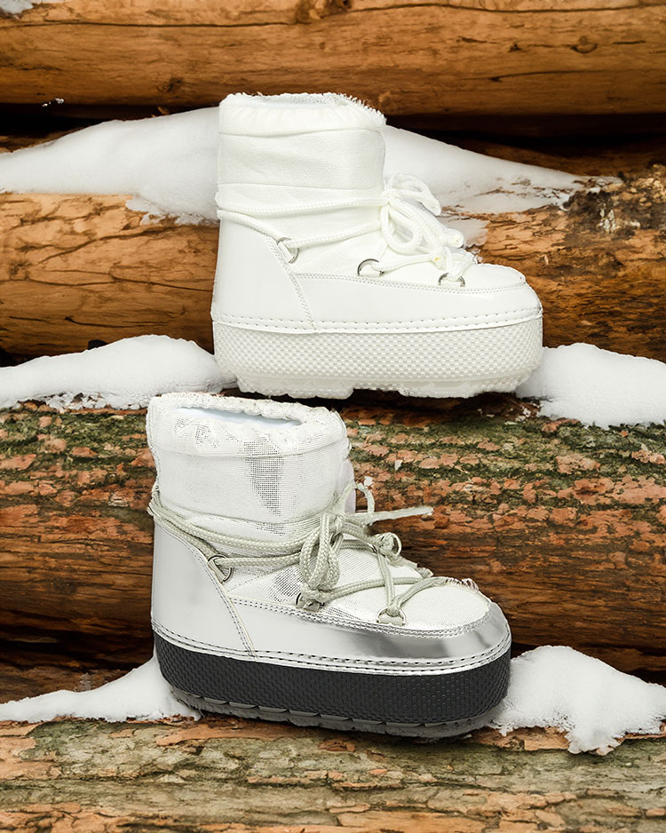 - Жіночі снігоступи з верхом з комбінації еко-лакованої шкіри та тканинного матеріалу. Зсередини підкладені тканиною, на шнурівці, застібаються на шнурівку. Ідеальні для зими!