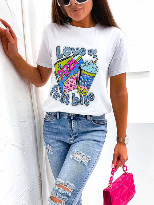 - Повсякденна жіноча футболка з принтом з коротким рукавом. Виготовлена з бавовняної тканини. Ідеальна основа для багатьох повсякденних образів! ПРИМІТКА: Похибка вимірювання (+/-) 1 см. Розміри виміряні в горизонтальному положенні.