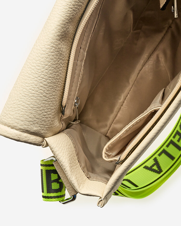 - Унікальна маленька жіноча сумочка з еко-шкіри з неоново-жовтим регульованим ремінцем. Модель має 4 кишені. Поєднання елегантності та спортивного стилю!