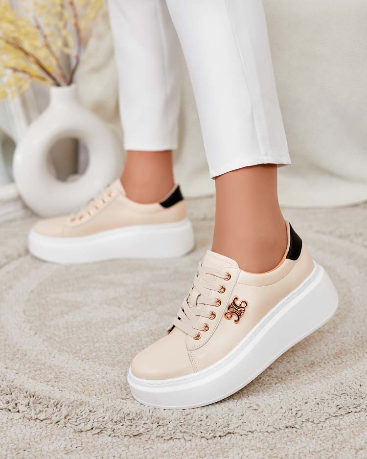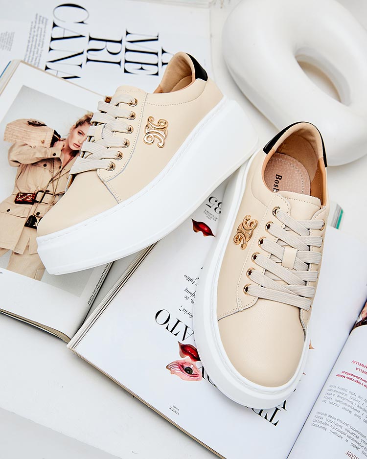 • Жіночі спортивні туфлі повністю з натуральної шкіри. Модель на платформі. Верх на шнурівці. Чудово пасуватимуть до повсякденних образів!