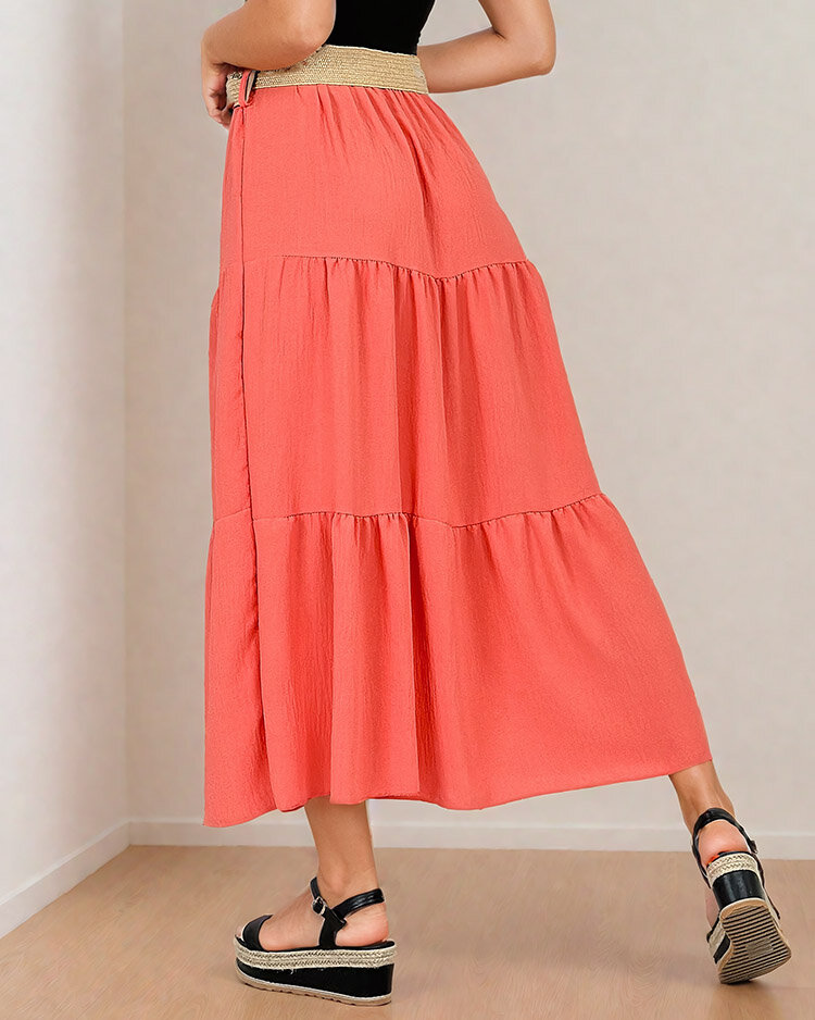 - Позачасова жіноча спідниця довжини міді. Модель має еластичний пояс, який чудово підкреслює талію. Крім того, в комплекті плетений пояс. Ця спідниця стане чудовим акцентом вашого повсякденного образу!