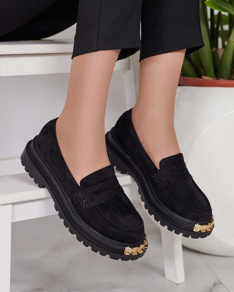 - Rewelacyjne mokasyny damskie na grubszej podeszwie, wykonane ze skóry ekologicznej zamszowej oraz eko skórzanej wkładki. Dodadzą stylu każdej stylizacji!