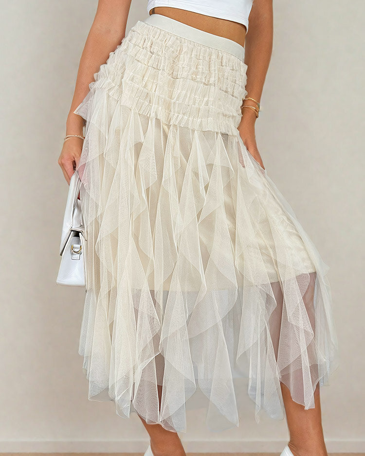 - Жіноча двошарова спідниця міді поза часом. Модель має еластичний пояс, який ідеально підкреслює талію. Ця спідниця стане чудовим акцентом вашого повсякденного образу!