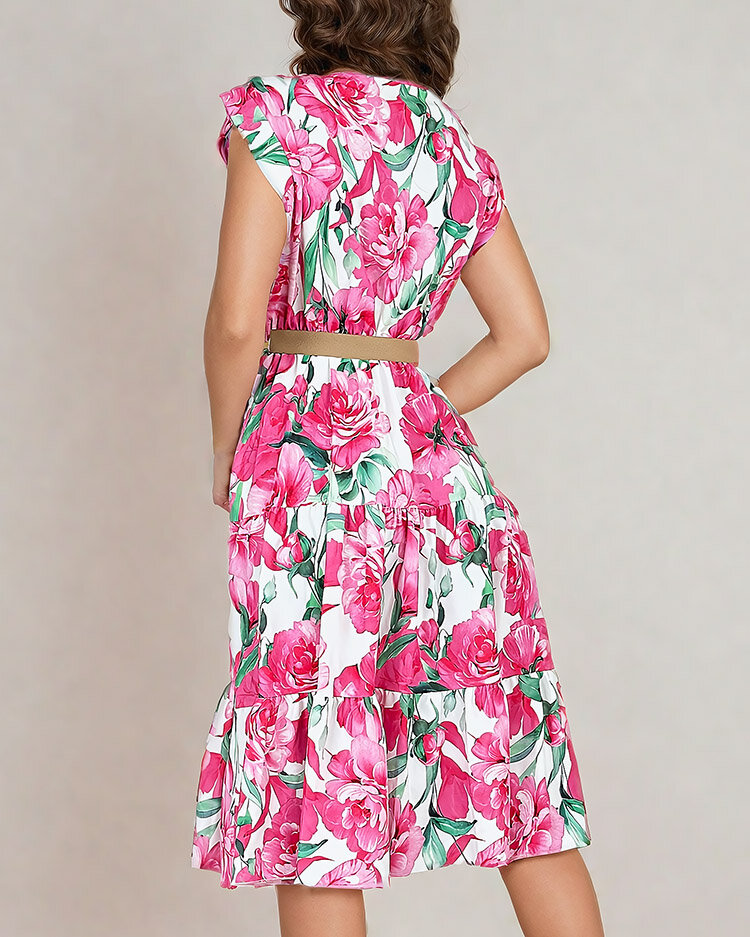 - Унікальна жіноча сукня з легкої тканини з квітковим візерунком. На висоті талії - пояс. Виріб довжиною міді, з коротким рукавом та воланом. Відчуй літо в цій моделі!