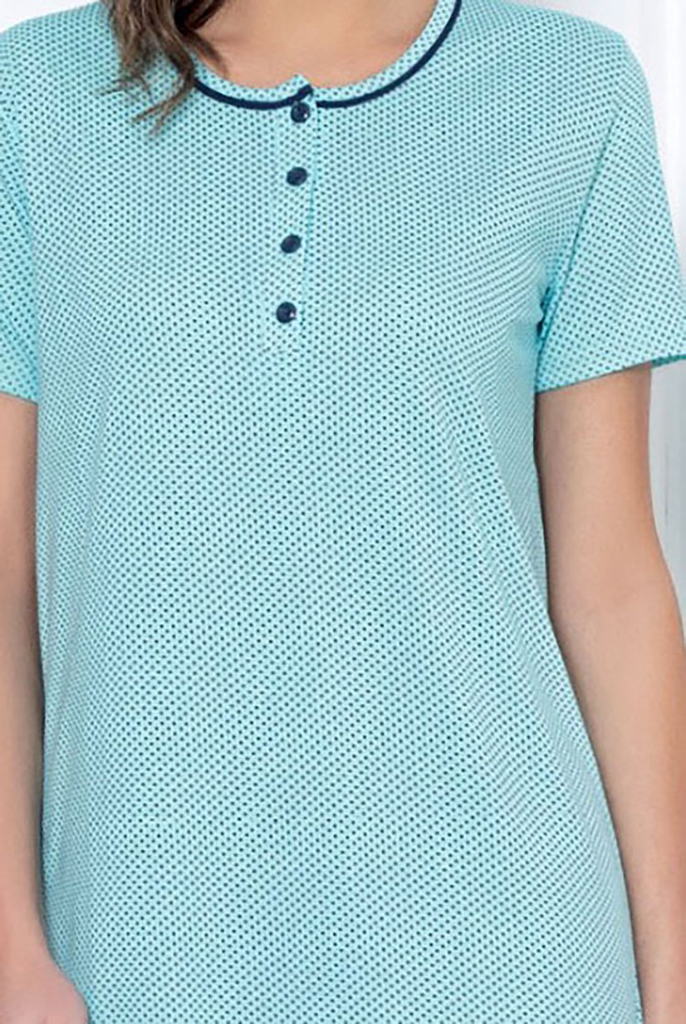 - Дуже зручна сорочка з коротким рукавом. Виготовлена зі 100% бавовни та оздоблена декоративним принтом. Модель має круглий виріз горловини з декоративними ґудзиками. ПРИМІТКА: Похибка вимірювання (+/-) 1 см.