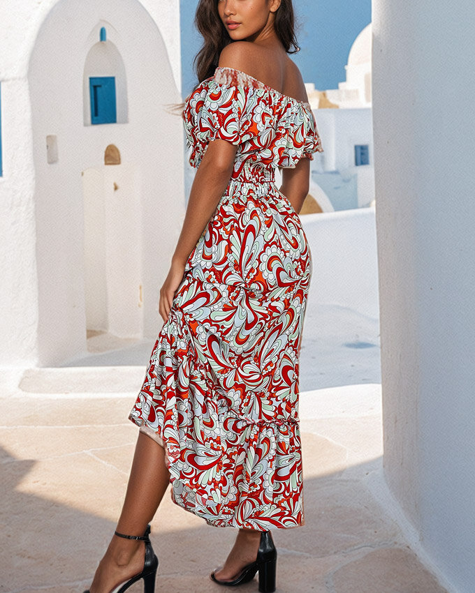 - Літній жіночий комплект з приємної, легкої тканини. Короткий топ в іспанському стилі має круглий виріз горловини та еластичний пояс. Довга спідниця має еластичний пояс та декоративні оборки. ПРИМІТКА: Похибка вимірювання (+/-) 1 см.