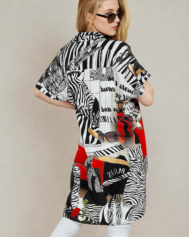 - Жіноча візерунчаста туніка з v-подібним вирізом і довгими рукавами. Виконана з приємного матеріалу. Модель з асиметричним низом. Відчуй весняну атмосферу разом з нею!