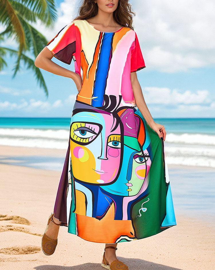 - Жіноча сукня міді з круглим вирізом і коротким рукавом. Виконана з приємного матеріалу. Модель прикрашена декоративним принтом. Ідеальна основа на кожен день!