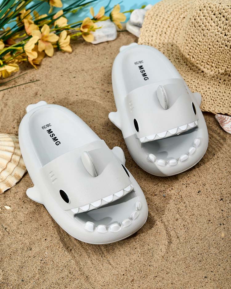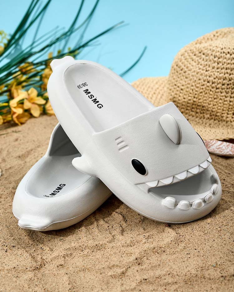 - Чудові жіночі гумові шльопанці на плоскій підошві. Модель нагадує акулу! Ідеальний вибір для відпустки!