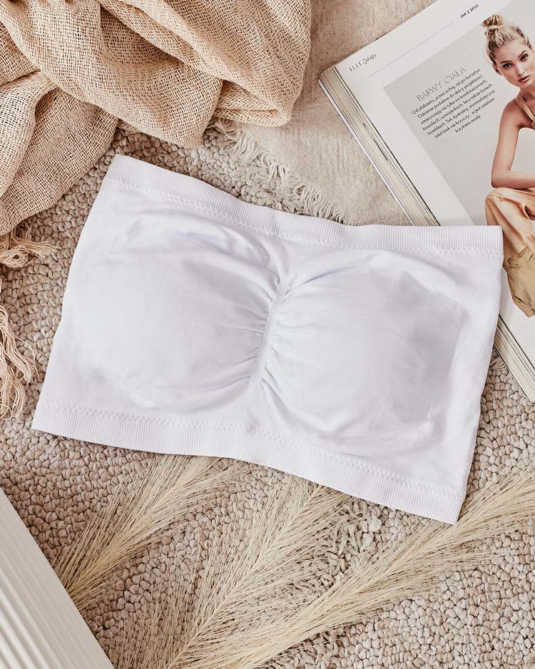 - Зручний жіночий бюстгальтер з еластичного, приємного матеріалу. Модель з м'якими вставками, без бретелей та застібки. Оздоблений гумкою. Ідеально адаптується до тіла.
