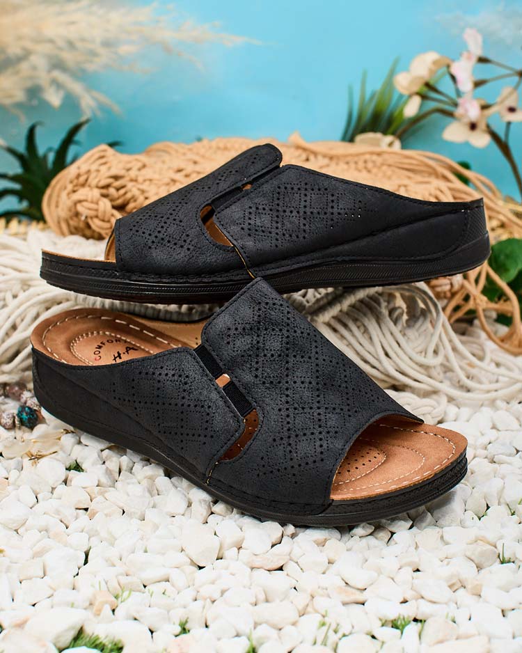 - Чудові жіночі шльопанці на плоскій підошві. Виготовлені повністю з екологічної шкіри. Мають ажурний верх. Ідеальний вибір для відпустки!