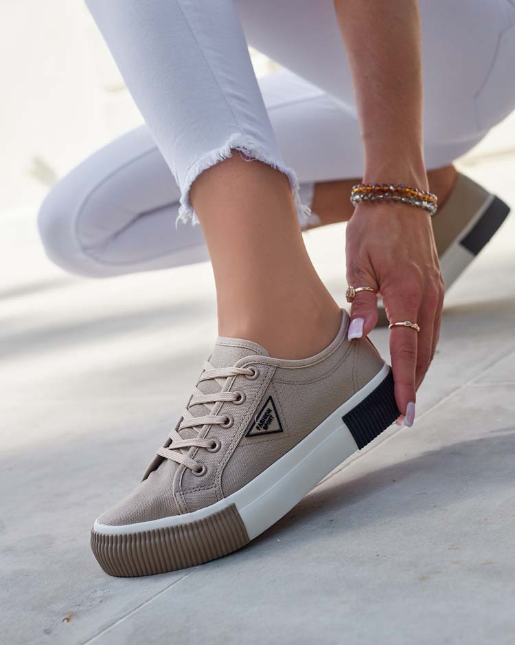 - Повсякденне жіноче спортивне взуття в стилі кросівок на плоскій підошві. Верх на шнурівці з тканини. Всередині устілка з тканинного матеріалу. Чудово підійдуть для літніх прогулянок!