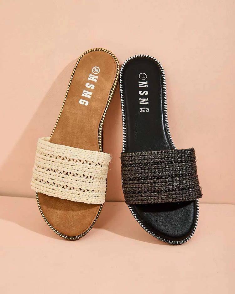 - Чудові жіночі шльопанці на плоскій підошві. Виготовлені з тканини та устілки з еко-шкіри. Ідеальний вибір для відпустки!